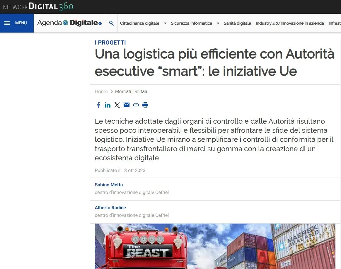 Screenshot of the news article published in Italian in the Agenda Digitale magazine on 13 October 2023.